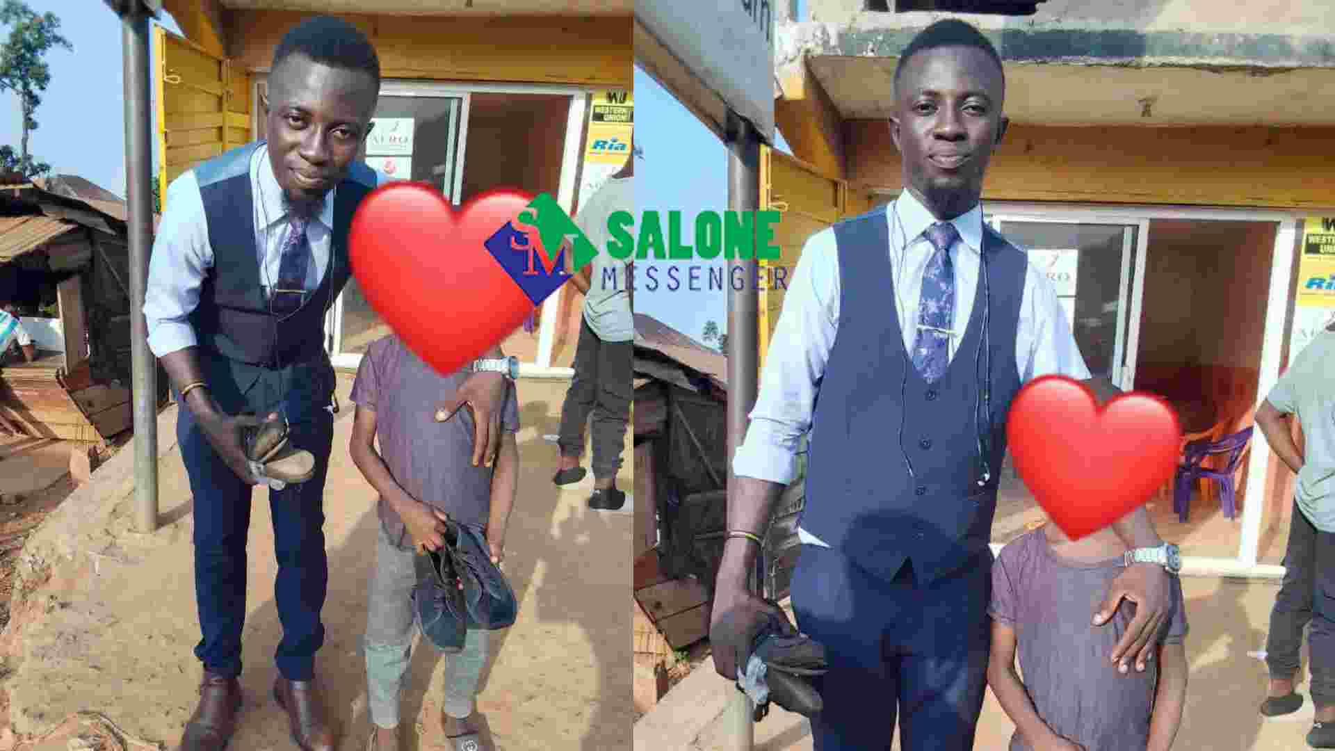 Yesterday on the 23rd January 2023, a young boy by the name of Michael was encountered in search of a shoemaker to fix his shoe. Unfortunately, the shoe was beyond repair and Michael was desperate for a quick solution as it was the only shoe he had for school. This triggered a humanitarian passion in the heart of Mr. Eric Scientis Koroma who encountered him and decided to intervene.