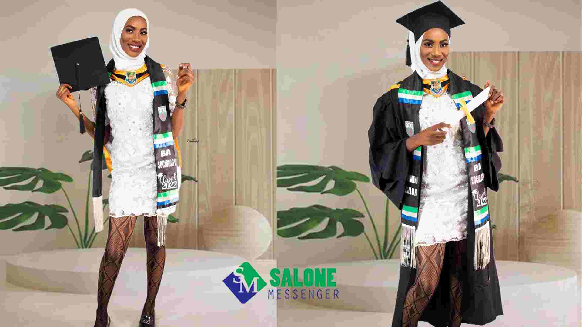 A brilliant Sierra Leonean lady identified as Muminoon Mobhi Jalloh, a recent graduate of Fourah Bay College in Sierra Leone, recently shared her excitement on Facebook as she celebrated the successful completion of her Bachelor of Arts degree in sociology. In her post, she congratulated herself for dreaming, believing, and surviving through the rigorous academic journey, which ultimately led to her success.