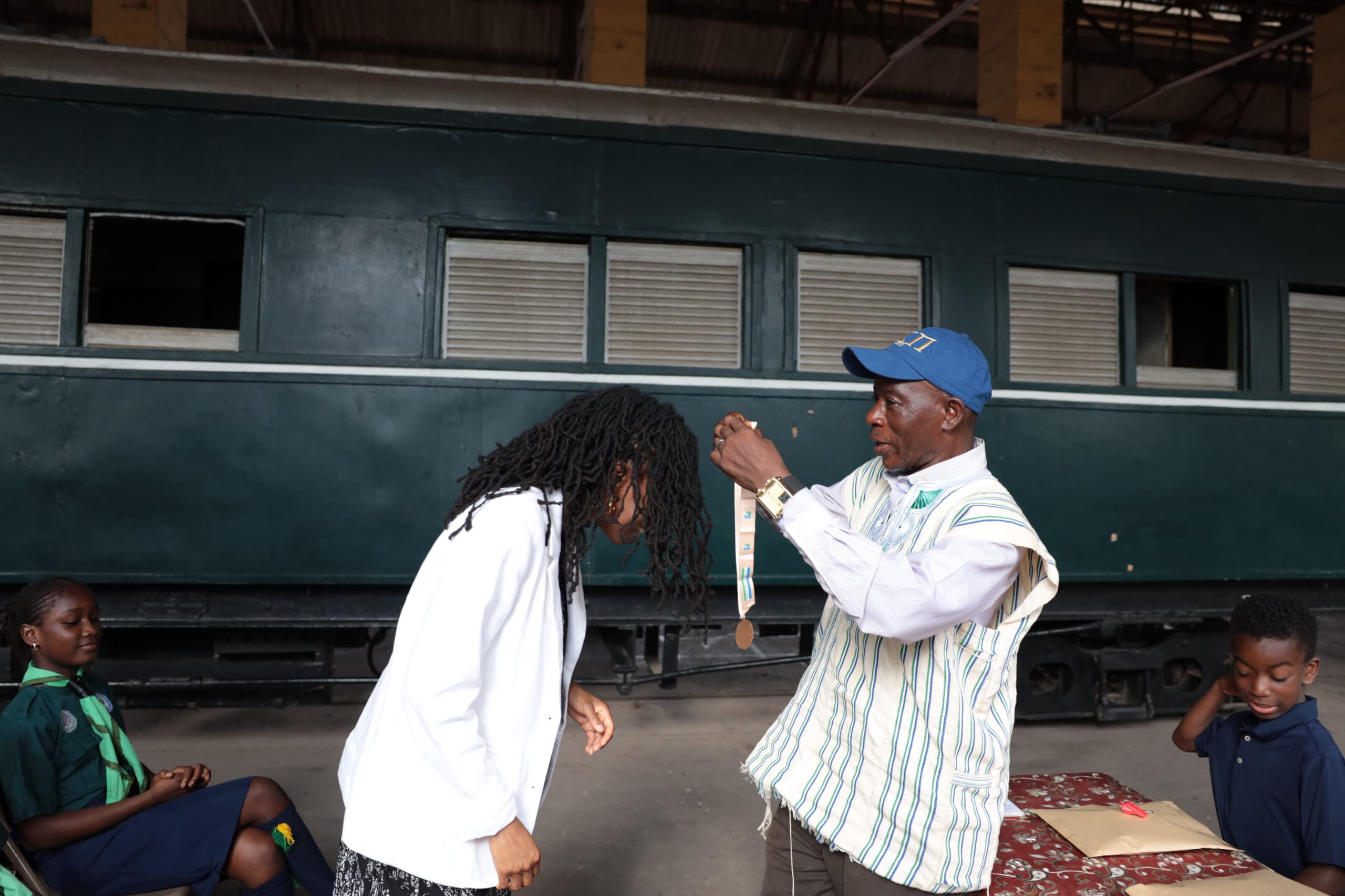 In appreciation of their visit and contribution, the museum presented gifts to the children and awarded a special medal to Chidi Blyden. The medal is given to individuals who have shown support for the development of the Train Museum.