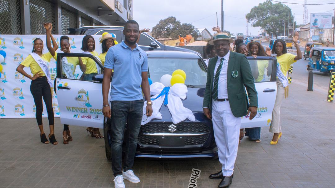 Chief Executive Officer of the Africa Young Voices (AYV) Media Empire, Ambassador Anthony Navo Jr and President of the National Union of Sierra Leone Students (NUSS), Mr Mohammed Rex Bhonapha have officially unveiled a brand new car as Star Prize for Miss University 2023/2024 at LOR Restaurant.