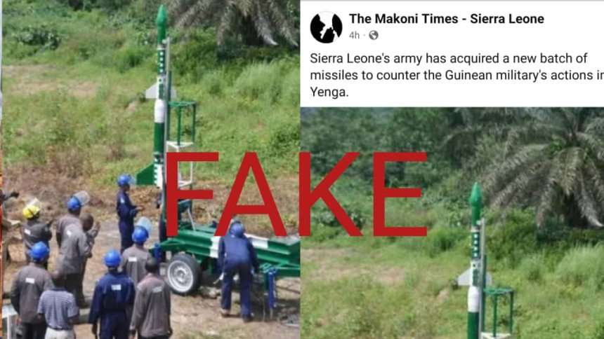 A photo shared by The Makoni Times on Facebook could go viral, claiming that Sierra Leone’s army has acquired a new set of missiles to respond to tensions with Guinea in the Yenga region. However, this image is not from Sierra Leone and the claim is false.