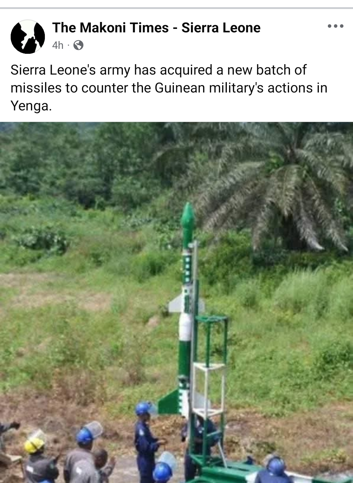 The blog post, shared four hours before this report was written, suggested that Sierra Leone’s army is now armed with missiles and is ready to respond to military activities by Guinea near Yenga, a border town between the two countries.