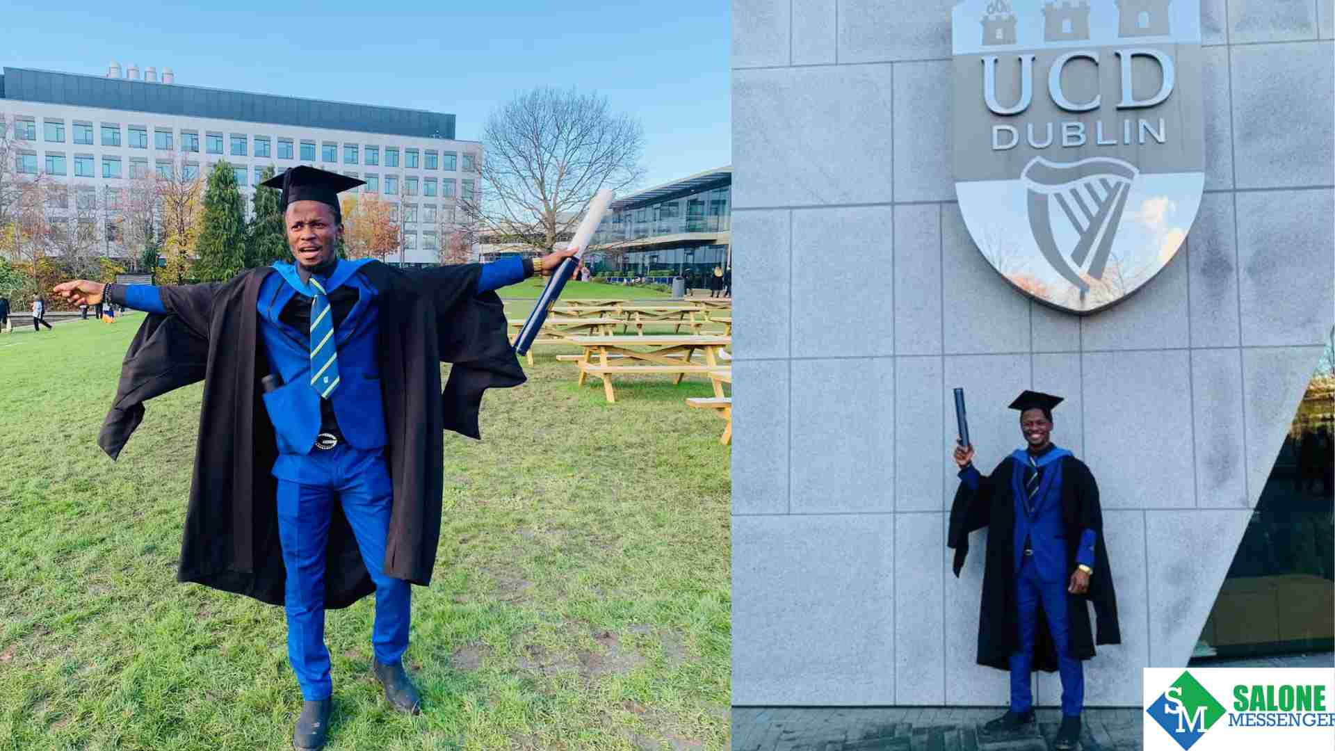 A brilliant Sierra Leonean man, Ishmail Bai Bundu who received a fully funded scholarship from the Irish Council for International Students has taken to social media to celebrate his achievement after earning his Second Class Honours – Masters (Agri) in Sustainable Agriculture and Rural Development from the University College Dublin.