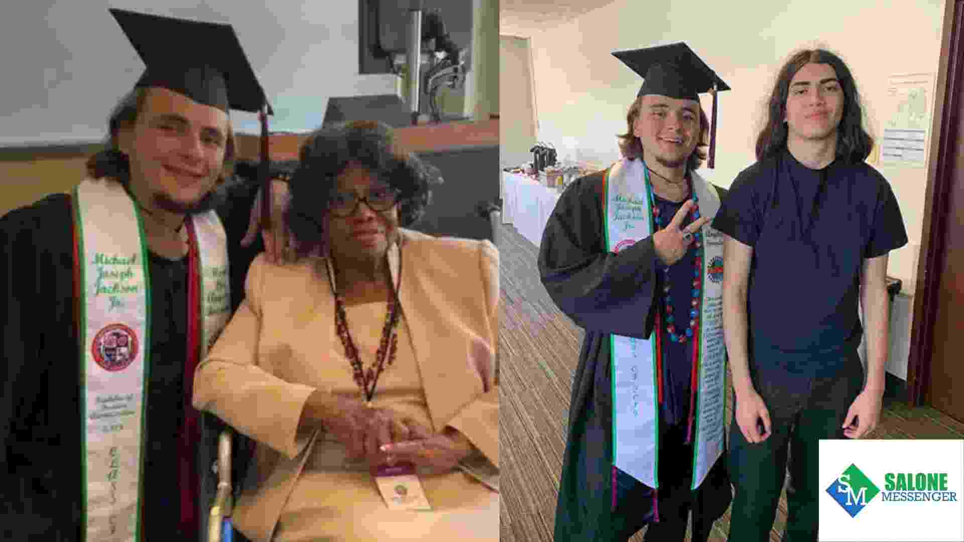 “I wish I could thank everyone who helped me get here, but I can’t, and regrettably, not everyone is pictured here,” he said beside photos of his family, including his grandmother Katherine Jackson, during graduation.