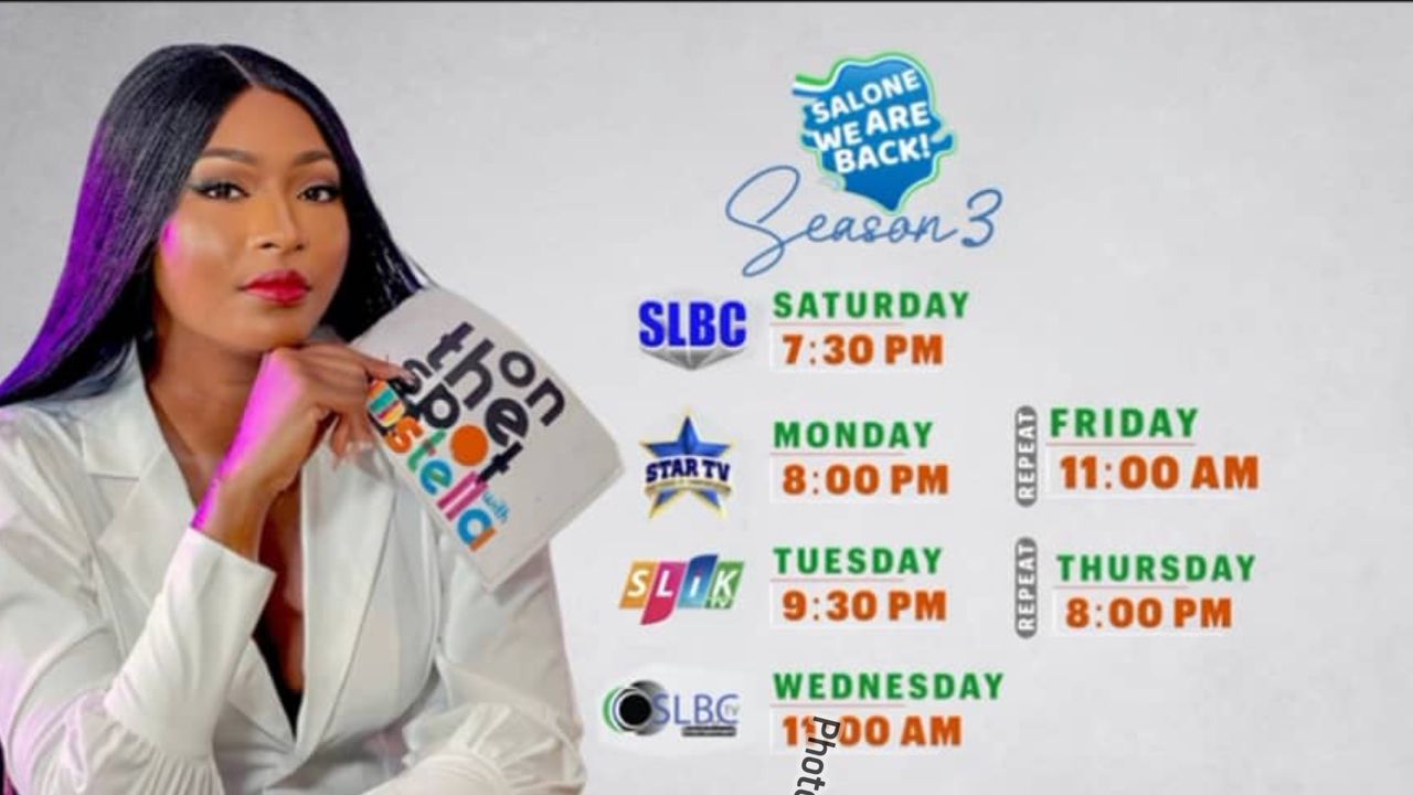 In a flyer posted by the iconic TV presenter on her social media handles. Stella Bangura has closed deal with major media houses including Sierra Leone Broadcasting Corporation (SLBC), Star Television, SLIK TV and more as its major local broadcasters for the season three of the On the Spot With Stella Show.