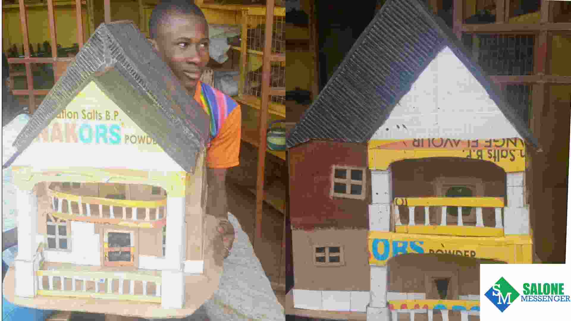 A talented Nigerian Kid living in Sierra Leone by the name of Chidera Nworie has left onlookers in awe after displaying the house he built using cartoons and glue.