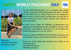 For more insights into the transformative work being done by educators in Sierra Leone and beyond, follow #TeachForSierraLeone and #WorldTeachersDay.